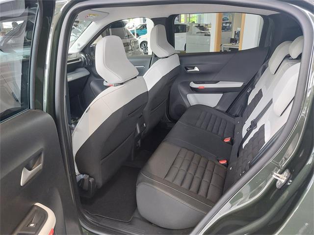 Serienausstattung:, Servolenkung, Radkastenverbreiterung, Elektrische Fensterheber vorne, Reifendruck-Kontrollsystem,, Elektrische Fensterheber hinten, Zentralverriegelung mit Fernbedienung, Parkbremse, elektrisch,, Regensensor, LED Rückleuchten, Fahrersitz höhenverstellbar, 12-Volt Anschluss auf der Mittelkonsole,, Innenrückspiegel, elektrochrom, Kopfstützen vorne, in der Höhe verstellbar, 3-Punkt Sicherheitsgurte hinten, (3), Elektronisches Stabilitätsprogramm (ESP) mit Antriebsschlupfregelung (ASR), Uni Lackierung, Toter-, Winkel-Assistent, Heckscheibenwischer und -heizung, LED-Tagfahrlicht, Rückleuchten mit 3D-Effekt,, Verkehrsschilderkennung, Head-Up-Display, Automatische Fahrlichteinschaltung, Automatische, Einschaltung der Warnblinkanlage bei Notbremsung, Warnhinweis für nicht angelegten Sicherheitsgurt vorne, und hinten, Kopfstützen hinten, 3, Airbags, Advanced Comfort Federung, Rücksitzbank, mit geteilten, (1/3-2/3) Rückenlehnen, Lenkrad mit Spaltleder bezogen, Servolenkung, Kabellose Smartphoneaufladung,, Stark getönte Heck- und Seitenscheiben, ISOFIX-Kindersitzbefestigung hinten (ausser Mitte), Stop&Start, System, Akustischer Fußgängerwarner (AVAS), Außenspiegel elektrisch einstell-, beheiz- und einklappbar,, USB Type C hinten (aufladbar), 3-Punkt-Sicherheitsgurte vorne mit Gurtstraffern und Gurtkraftbegrenzung,, Garantie 2 Jahre Garantie, Connect One Paket für 10 Jahre inkludiert, Kofferraumboden in Höhe verstellbar,, LED-Scheinwefer, Getriebe: Automatik Elektroantrieb mit fester Getriebeübersetzung, Automatische, Verriegelung während der Fahrt (Türen, Heckklappe), On-Board Charger 7,4kW, Dachreling in Schwarz, glänzend, Antiblockiersystem (ABS) mit elektronischem Bremskraftverteiler (EBV) und Bremsassistent, USB, Type C vorne (aufladbar/Datenübertragung), Color Clip Andre Rot, Mode 3-Ladekabel 1-phasig, 6 Meter, Länge, Türgriffe Schwarz glänzend, 17 Zoll Leichtmetallfelgen ARAGONITE, Einparkhilfe vorne & hinten &, Rückfahrkamera sowie seitliche Parksensoren, Klimaautomatik, My Citroën Drive Plus, Ambiente, METROPOLITAN GREY, Unterfahrschutz vorne und hinten, Außenspiegelkappen glänzend Schwarz, lackiert, Türsäulenverkleidung glänzend Schwarz lackiert, Sicherheitspaket, Modus C Komfort -, Reduzierung der Nutzung der Motorbremse, Connect Plus Paket für 12 Monate inkludiert, , Sonderausstattung:, Schwarz / Grau 0 EUR, Montana Grün/Dach Opal Weiß 0 EUR, Beheizbare Vordersitze 0 EUR, 6 Lautsprecher 0 EUR, Lenkradfernbedienung 0 EUR, Bluetooth-Freisprecheinrichtung 0 EUR, Geschwindigkeitsregler- und begrenzer 0 EUR, Aktiver Spurhalteassistent 0 EUR, Beheizbare Windschutzscheibe 0 EUR, Berganfahrassistent 0 EUR, Advanced Comfort Sitz 0 EUR, Nebelscheinwerfer 0 EUR, Beheizbares Lenkrad 0 EUR, Winterpaket 702 EUR, 10,25 Zoll Touchscreen 0 EUR, 3D-Navigationssystem 0 EUR, Connect-Box 0 EUR, Kabelloses Android Auto und Apple CarPlay 0 EUR, Radio DAB 0 EUR, Aktiver Notbremsassistent (Active Safety Brake) 0 EUR, Dach in Opal Weiß 0 EUR, On-Board-Charger 11 kW - dreiphasig 402 EUR, Stoff Schwarz Hello / Kunstleder Hellgrau 0 EUR, Geschwindigkeitszeichenerkennung 0 EUR, Zweifarben Lackierung Montana Grün 552 EUR